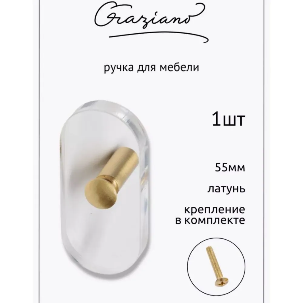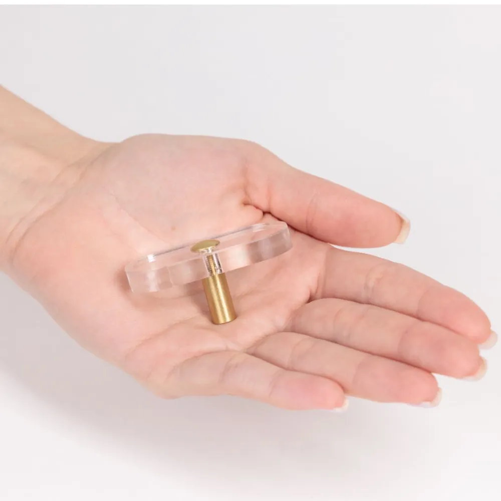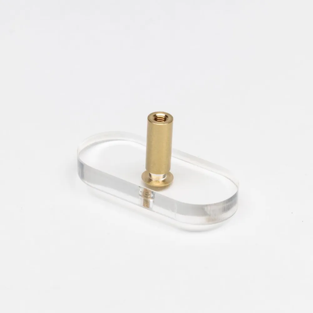 Прозрачная мебельная ручка-кнопка из латуни